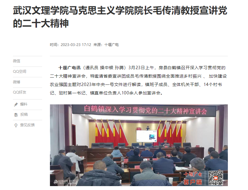 新闻链接:yl23455永利院长毛传清教授宣讲党的二十大精神-十堰广电网 (syiptv.com)