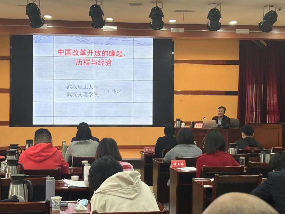 2023年3月10 日上午,我校yl23455永利院长、武汉理工大学毛传清教授应邀为2023年全省民主党派中青年骨干培训班授课。毛院长以“中国改革开放的缘起、历程与经验”为题,深入讲述了改革开放的历史前提和蕴酿探索、发展历程和基本特征、巨大成就和根本原因、伟大意义和基本经验,毛院长的讲课深入浅出,生动活泼,理论联系实际,材料数据丰富,既有思想高度和理论深度,又有很强的针对性和感染力,受到民主党派中青年骨干培训班学员的欢迎和承办方湖北省社会主义学院领导的高度评价。