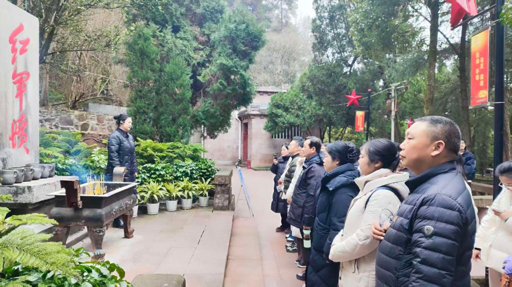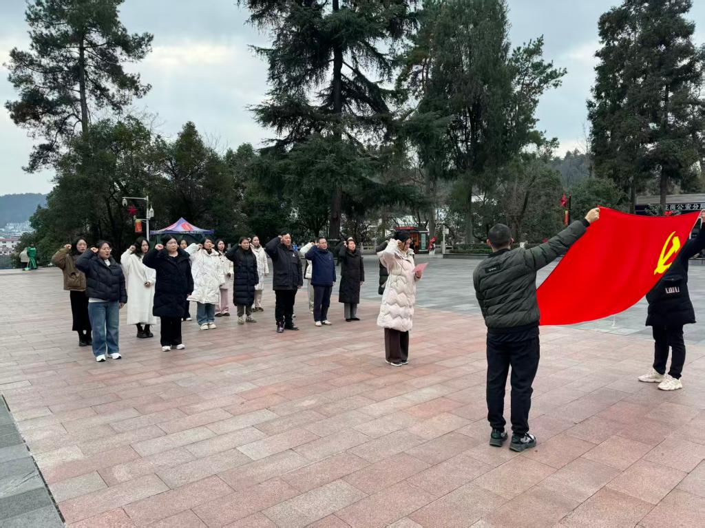 全体教师步行至红军山烈士陵园。在青松翠柏环绕中,大家怀着无比崇敬的心情,向革命先烈敬献花篮、鞠躬致敬,并在鲜红的党旗下庄严重温入党誓词。