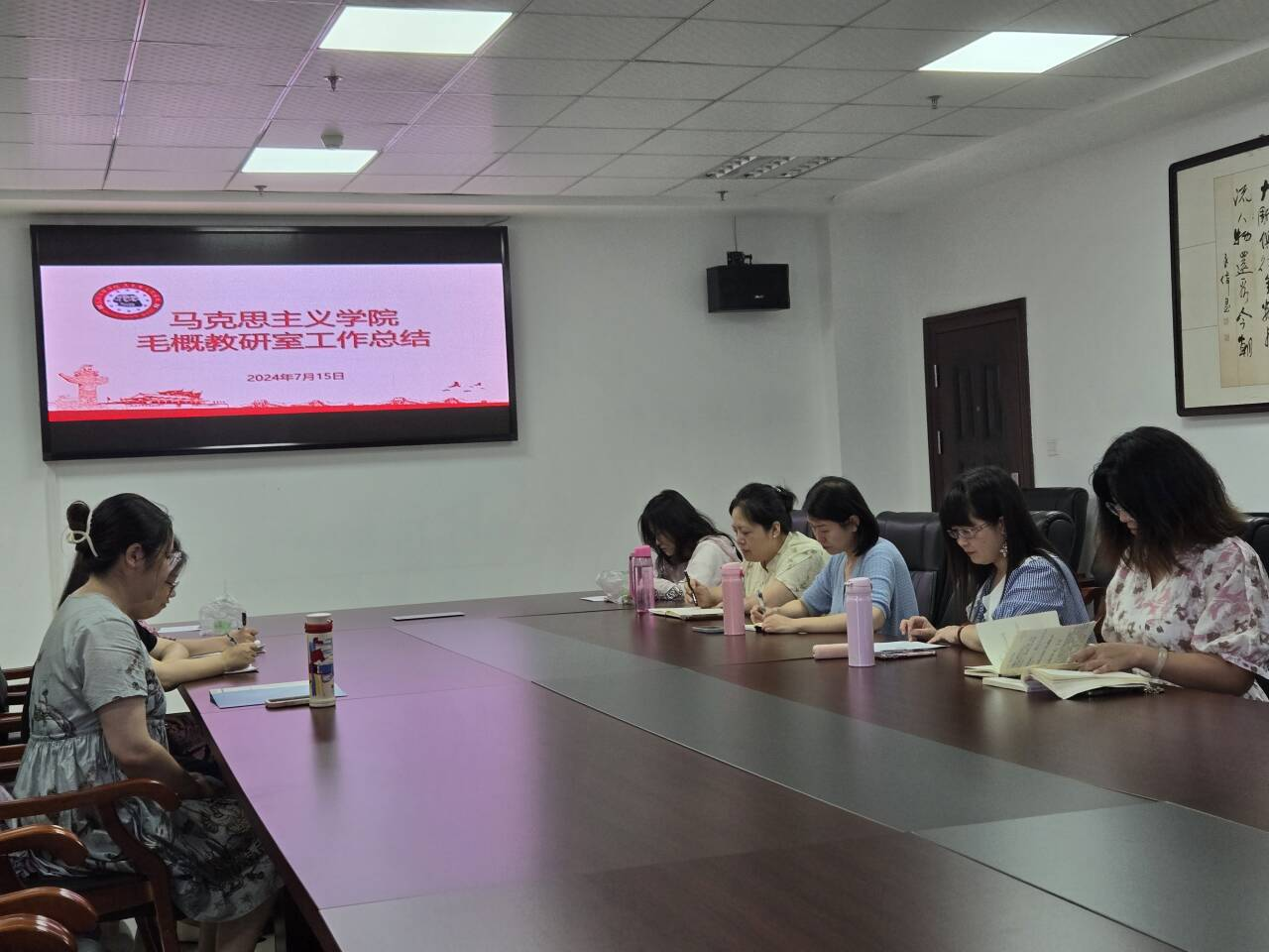 7月15日,在行政楼802会议室。yl23455永利对本学期,共有3门思想政治理论课进行了期末总结会,会议分别由《中国近现代史纲要》《毛泽东思想和中国特色社会主义概论》《习近平新时代中国特色社会主义思想概论》教研室主任主持,全体授课教师参加了会议。