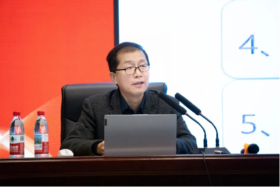杜永成以《走好新时代科技自立自强之路》为题,带领大家系统学习领会习近平总书记关于科技创新的重要论述,围绕“世界科技竞争日趋激烈”“我国科技机遇挑战共存”和“加快科技自立自强步伐”三个方面,通过丰富的事例阐述了高水平科技自立自强的重大意义及其深刻的历史逻辑、鲜明的时代特征和清晰的实践导向,探讨了未来我们如何走好新时代具有中国特色的科技自立自强之路。